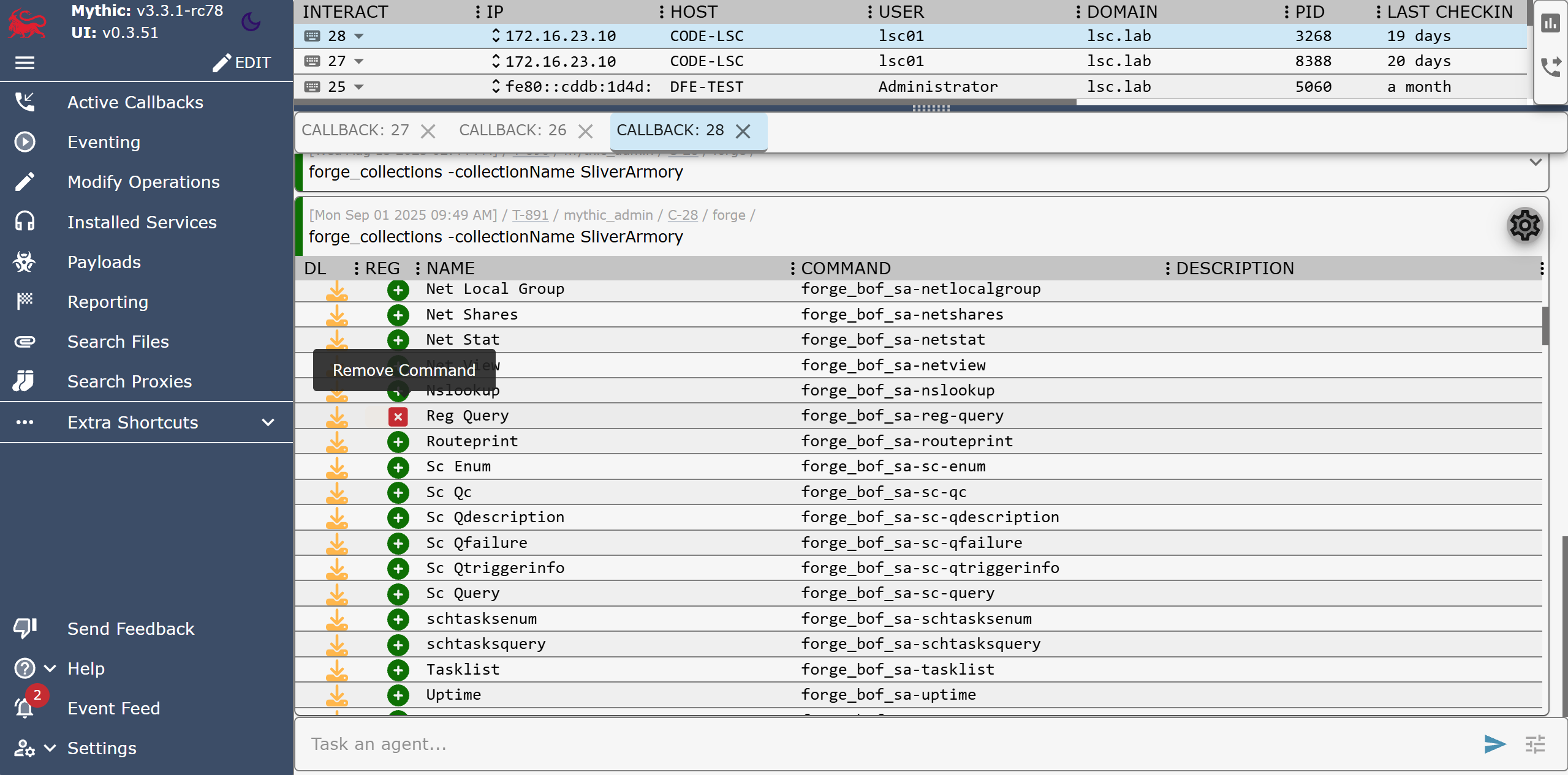 Now that Forge knows about our beacon configuration, we need to rebuild the Forge container, and we can start registering BOFs for our beacon. Since the commands and registrations only exist on the server side, they are also globally available for all callbacks without us having to touch the already deployed beacons.