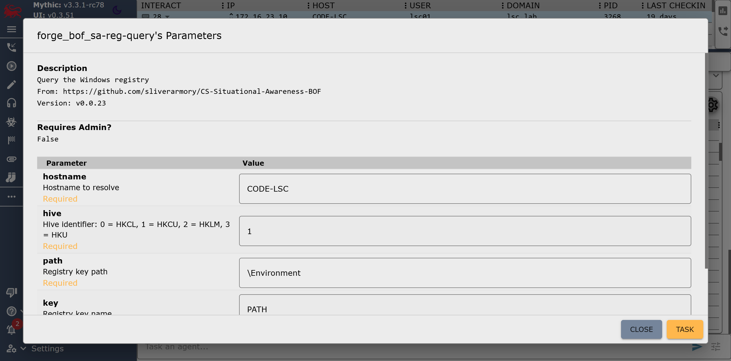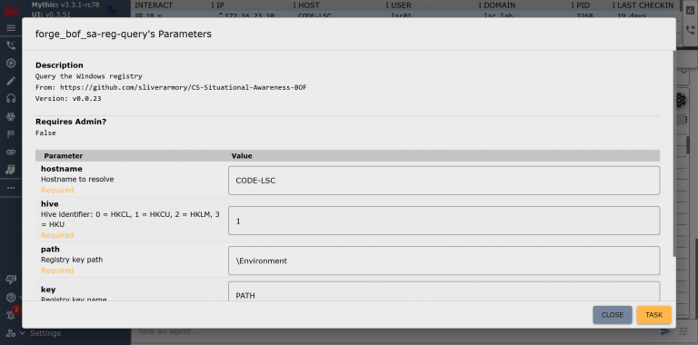Figure 3: Forge’s parameter UI for the Reg Query BOF
