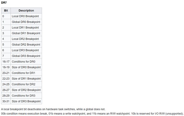 To use hardware breakpoints, we first need to set the debug registers accordingly.